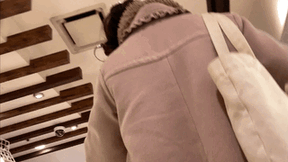 暖かそうなピンクベージュのコートを着込んだ、