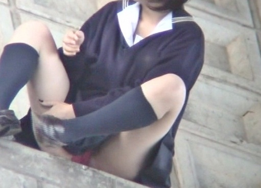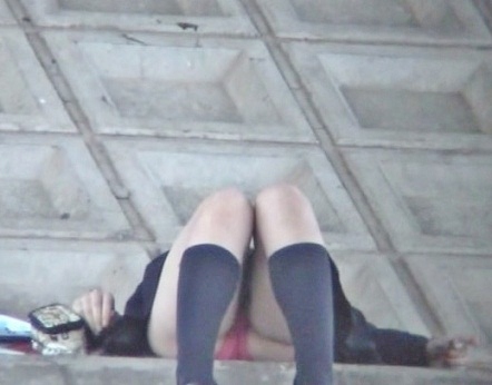 2人組のJ○がスカートをめくり上げてパンチラしています