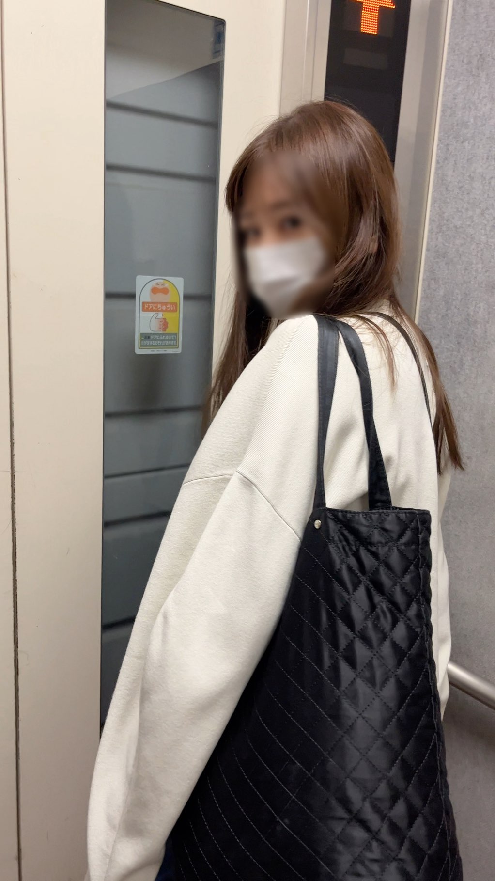降車駅ではエレベーターに乗ったため、ここで逆さ撮りにも挑戦!彼女の尻肉もパンツもバッチリ撮影!バレて最後は睨まれましたが、特に○察に突き出されることなく、撮影成功!今はこの動画を見て、何度も○きまくっています~!!