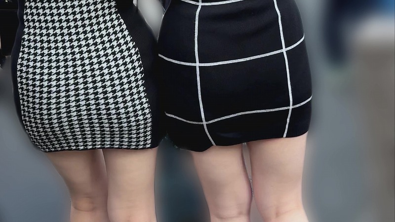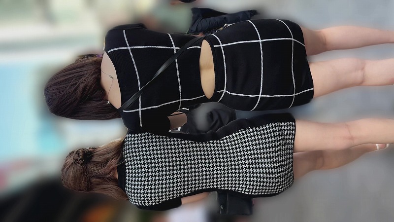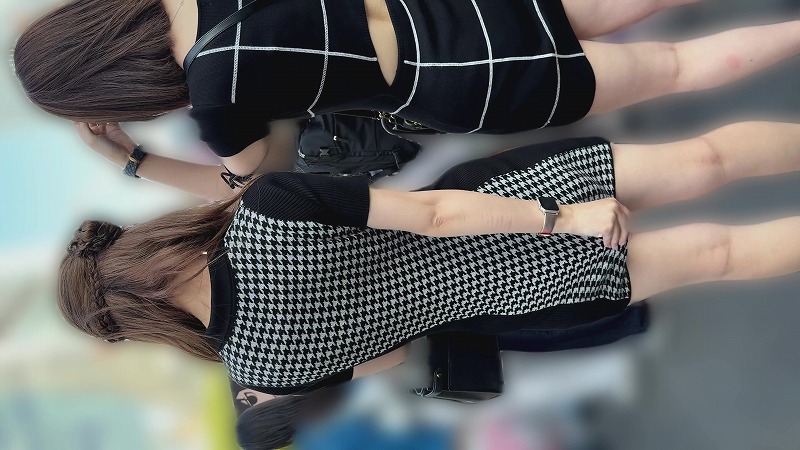 ミニニットワンピを着たスタイル抜群の二人組に撮影させていただきました。