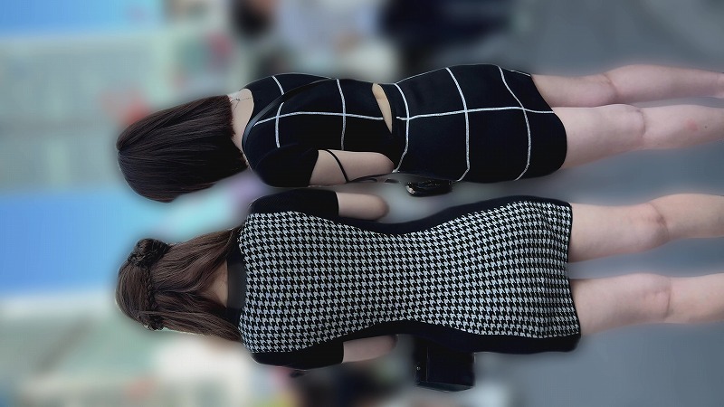 美尻、細いウエスト、二人揃ってスタイル抜群です。ミニワンピから伸びる美脚も最高です。