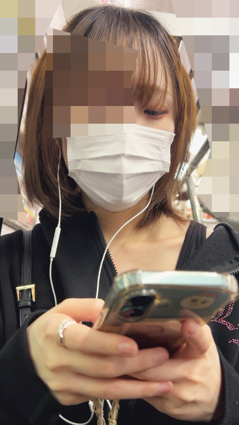 お顔も撮ろうとこっそりスマホを向けると、たまにこちらを気にするそぶりも可愛い♥ そしてちょっと地雷なオレンジ系メイク