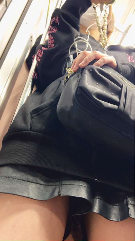 超エロ脚さんが、混雑した車内で人知れず生脚をたっぷりさらしています。混んでいるから、人々から見えないところで♥