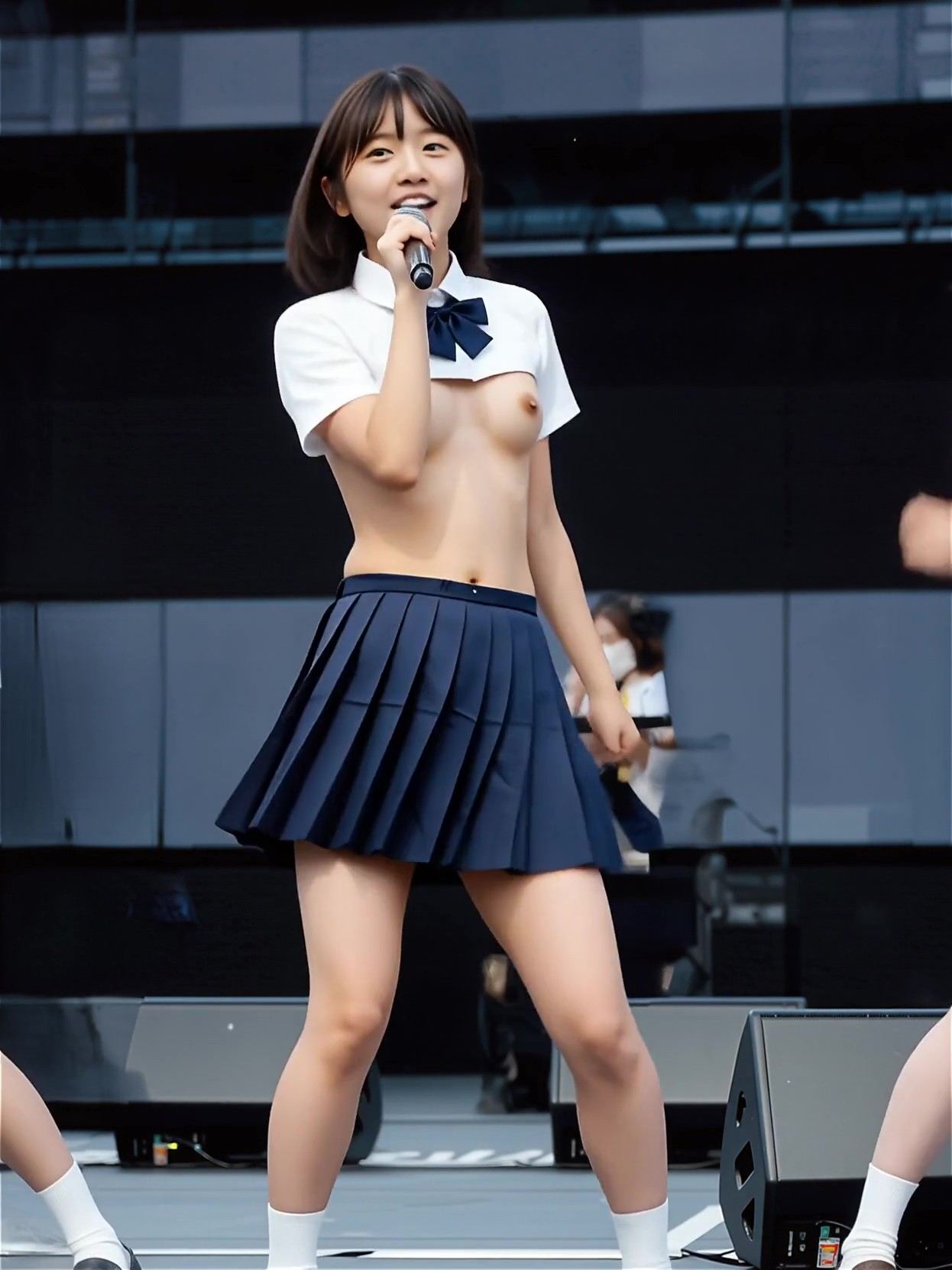 制服をたくし上げておっぱい丸出しの状態でライブに挑みます。
