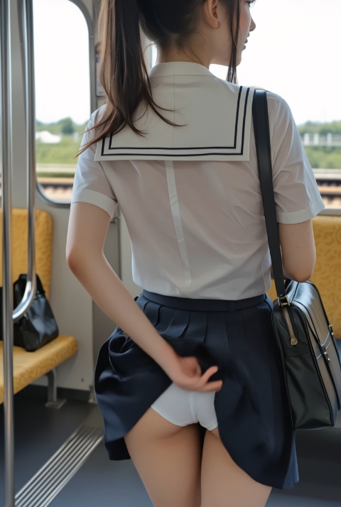 朝の電車の中、制服姿の女子が、スカートをめくってお尻を見せつける姿を収めた動画集です。