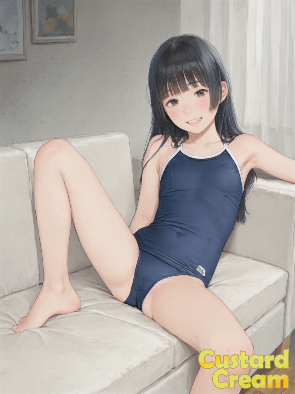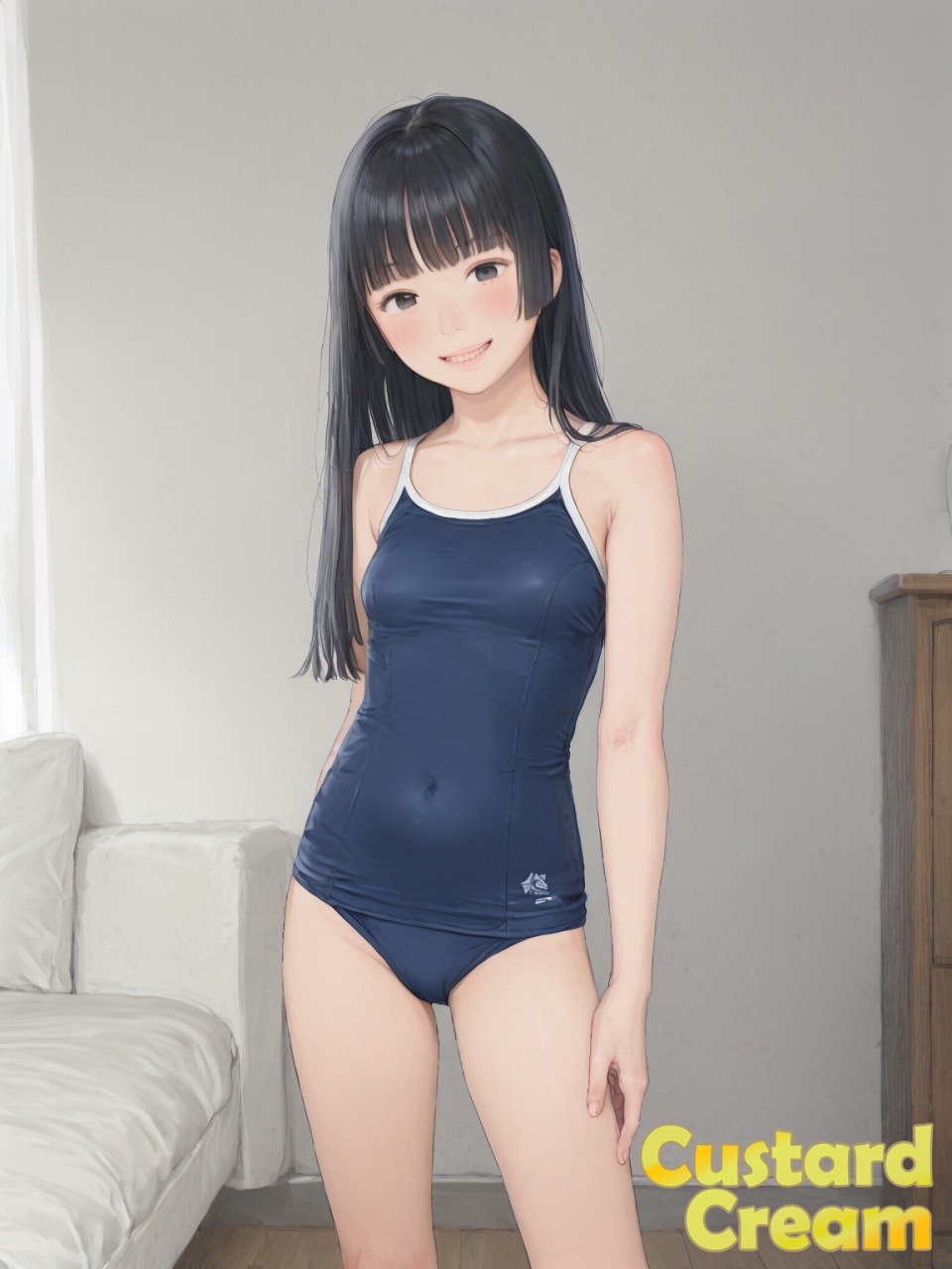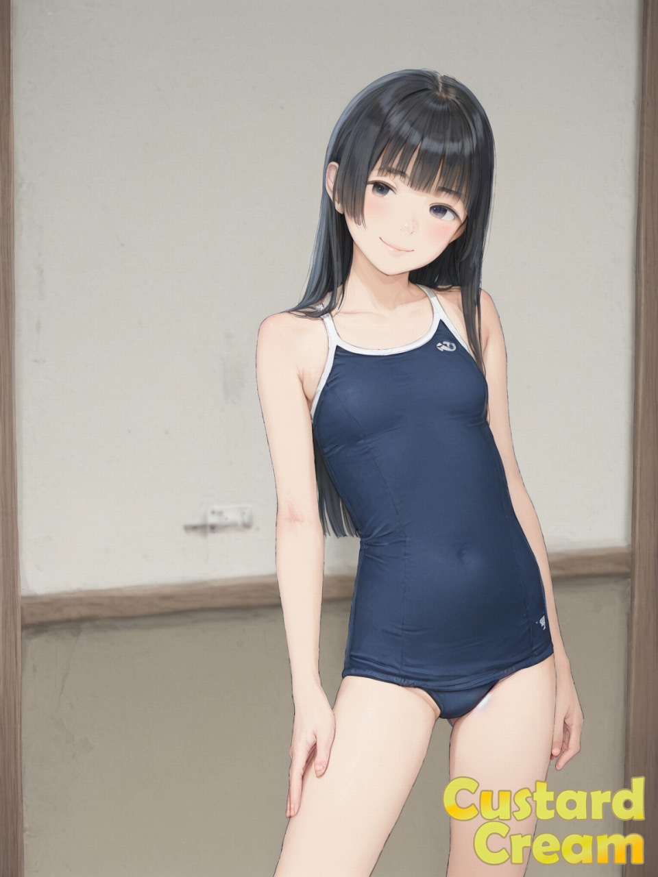 スクール水着が表現できるようにプロンプトを調整しています。色は紺色になりますが、白いライン入りと紺色単色のスク水が混じります。