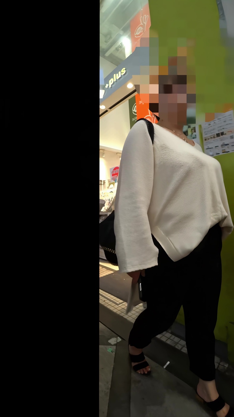 20代と思しきお姉さんです。白のゆったりとしたトップスを着ていました。間違いなく爆乳を気にしてのものだと思います。まあポッチャリではあります。