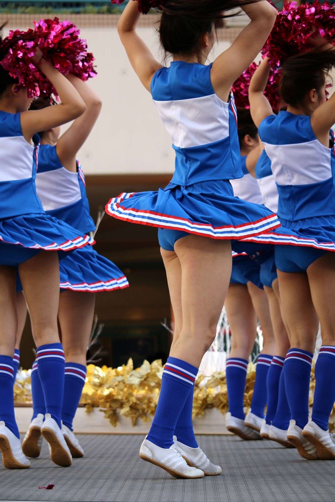 彼女たちのプロ意識の高さと観客を楽しませるという使命感がひしひしと伝わってきます。何度も何度も繰り返されるハイキック、キレのあるターンからの青アン〇コ、観客に最もインパクトを与える非常にレベルの高いVジャンプの「決定的瞬間」を鮮明に激写しています。