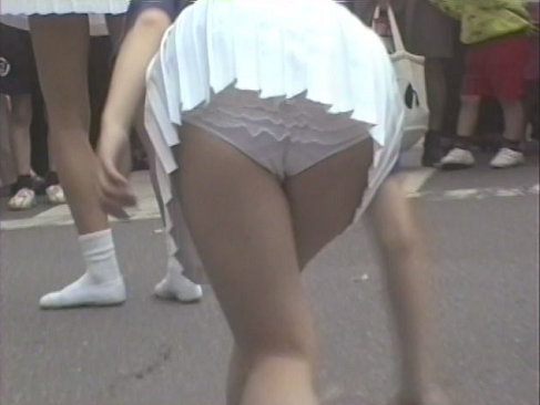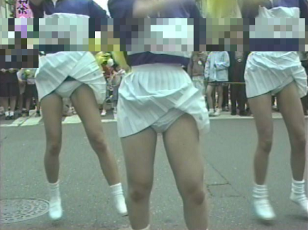 超ミニのワンピース着用のチームも激しく踊ります。ただでさえワカメちゃん状態なのにチアパンがモロ見えです。