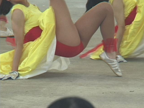 最後は運動場のような場所。応援団や楽団もいますので応援チアリーダーと思われます。当然チアユニです。
