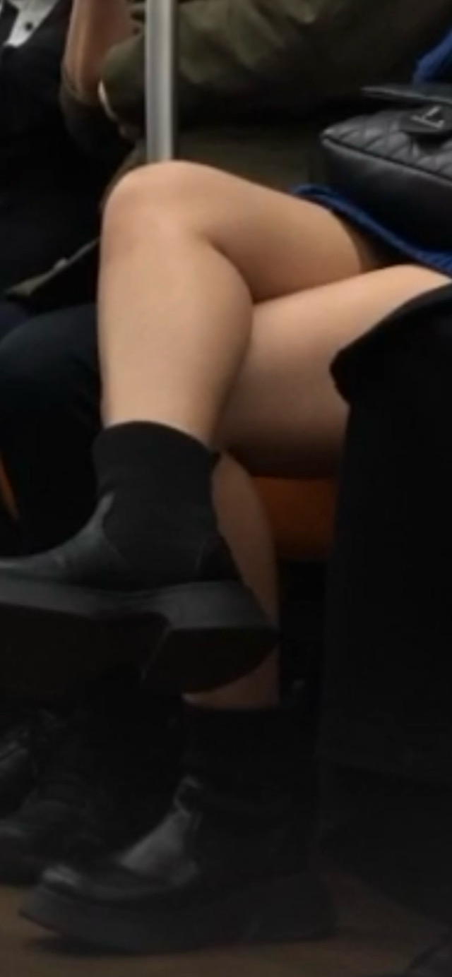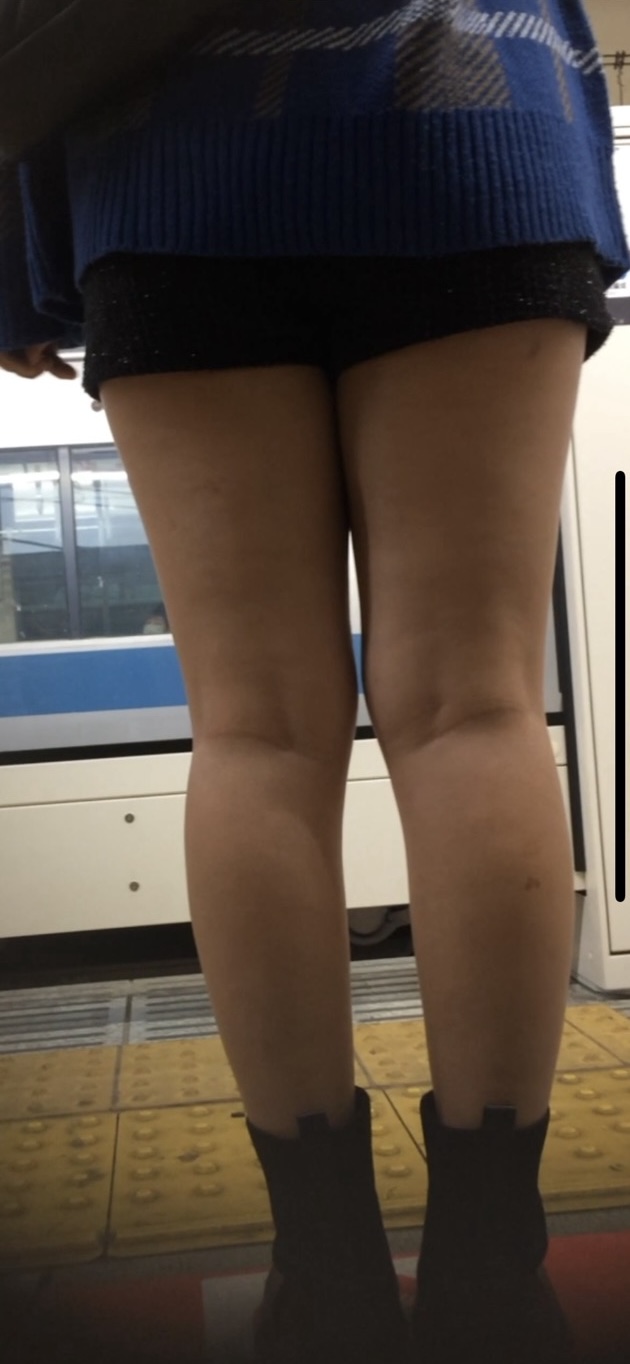 いつものように徘徊していると遠目から確認できるほどの健康的な太ももJDを発見!近頃よく見かけるショーパン生脚ブーツです。