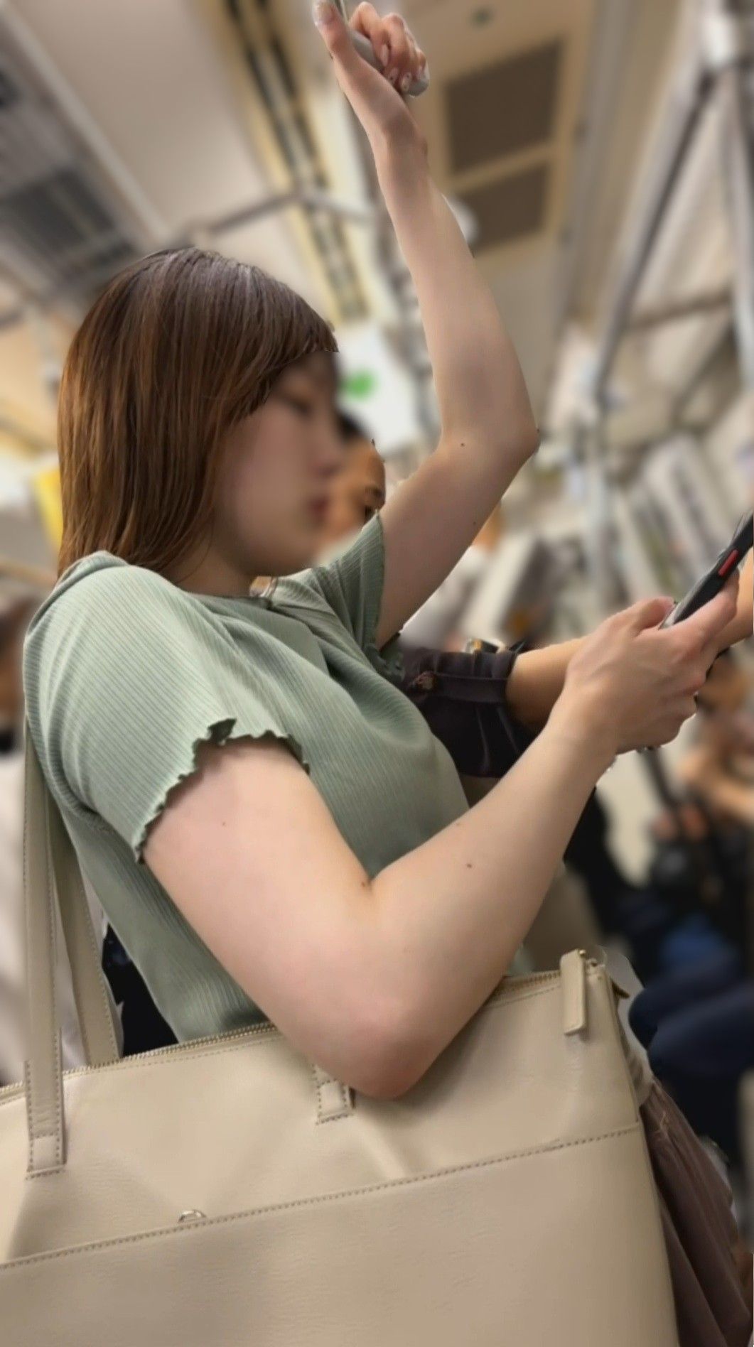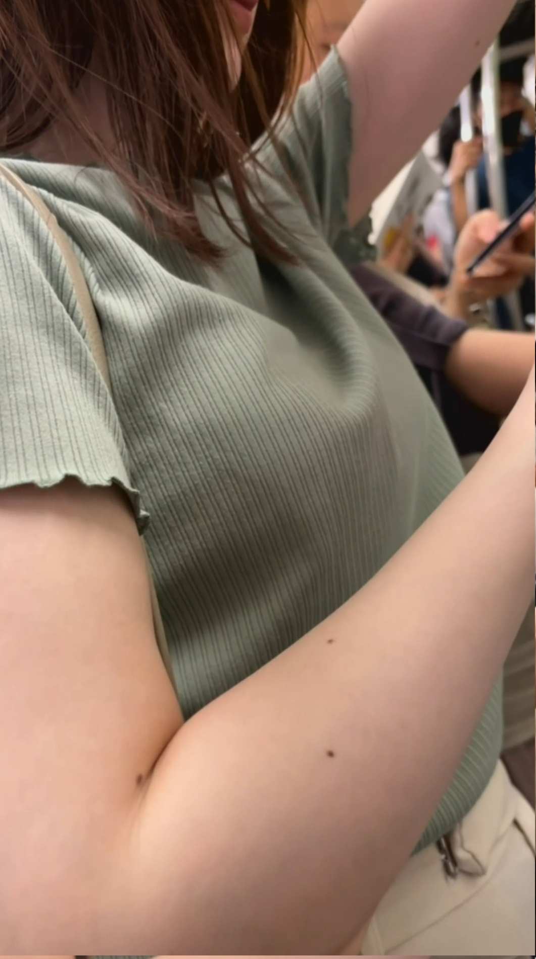 電車内で深呼吸して落ち着きを取り戻し、美顔と美乳の絶景コラボ撮影に成功!最初から最後まで、おっぱいと美顔に集中しました。