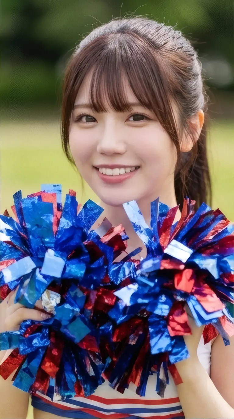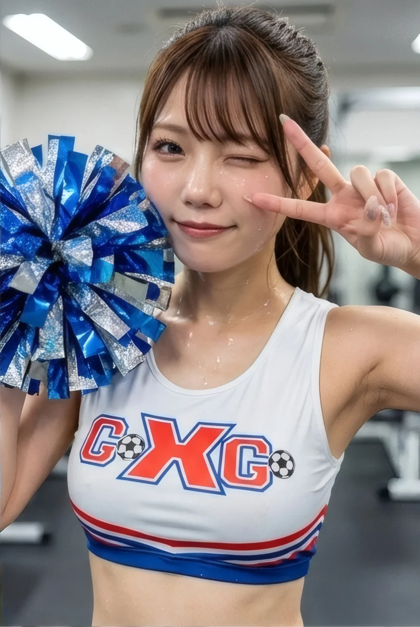 衣装はトリコロールのミニが爽やかなチアガール衣装。