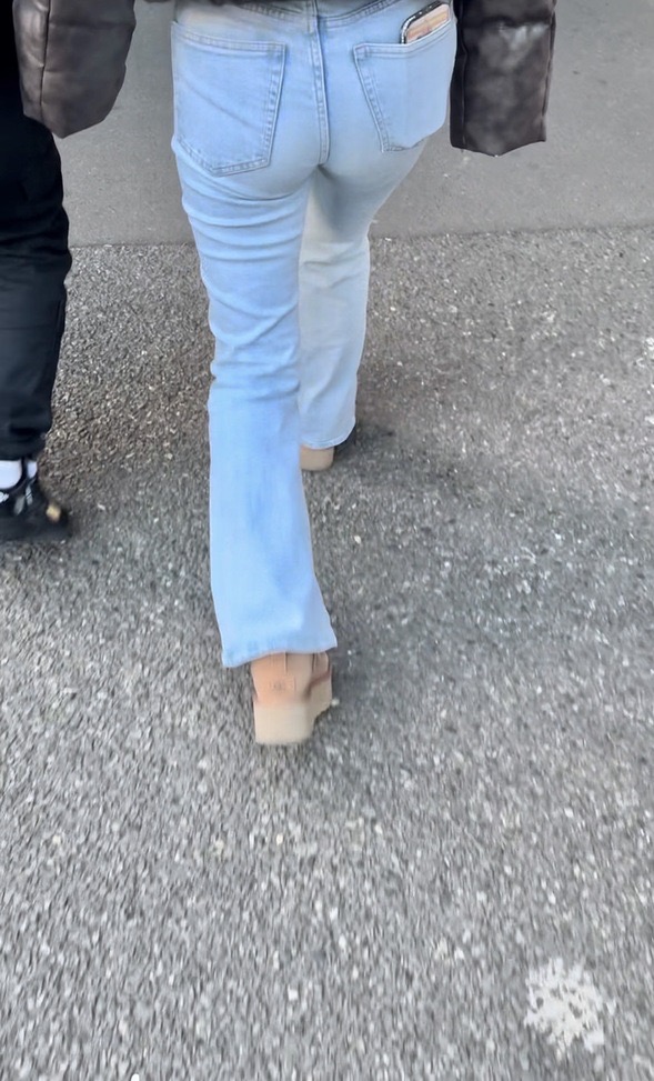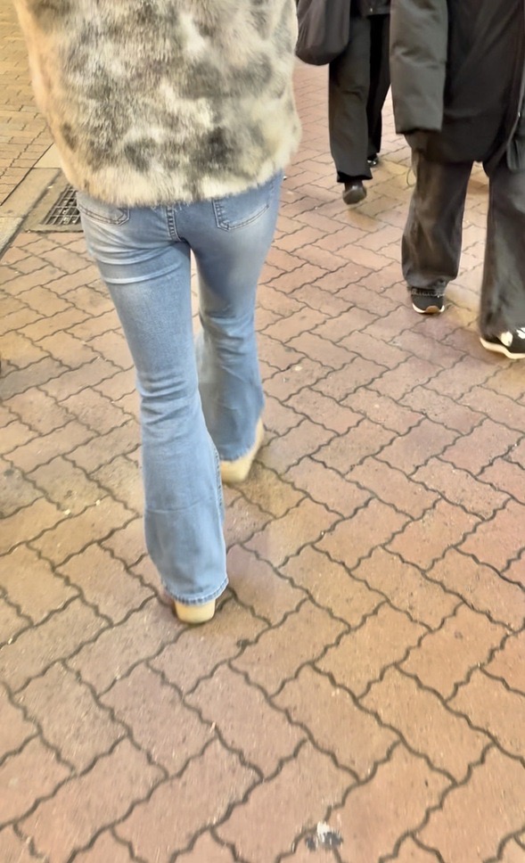 1人目(表題)はもこもこのアウターに淡いブルーのフレアデニムのお姉さん
