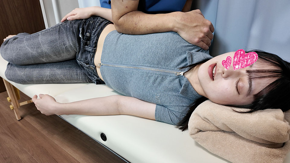 第一部として整体モニターの撮影風景が収録されております。猫背と肩こり解消をしたいとのことでしっかり神経系のマッサージも取り入れていきました。胸の中心からやや上にある神経を刺激すると痛がるめるさん。その表情はとても可愛らしいです。腋の下部のマッサージもなかなか痛そうな表情をしています。めるさんはジーンズを履いていたのでトレーニング用の短パンに履き替えてもらいました。若い太ももはつるつるぴかぴか。そこも容赦なく刺激をしていたがる表情を楽しみます。