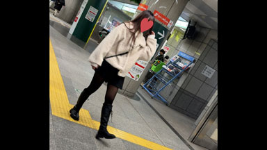 改札から現れた姿はブーツに黒のミニスカ、モコモコアウター。モコモコアウターだけど1日目と違うっぽい?