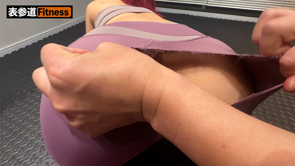 四つん這いの姿勢になった際には、レギンスがパツパツになり、ぷりんとした綺麗なお尻に我慢できず、ほぐす名目で叩いたり揉んだりしてしまいました。