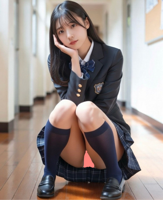 学校で可愛い笑顔を見せてくれるブレザー制服姿で座っている美少女たち♡