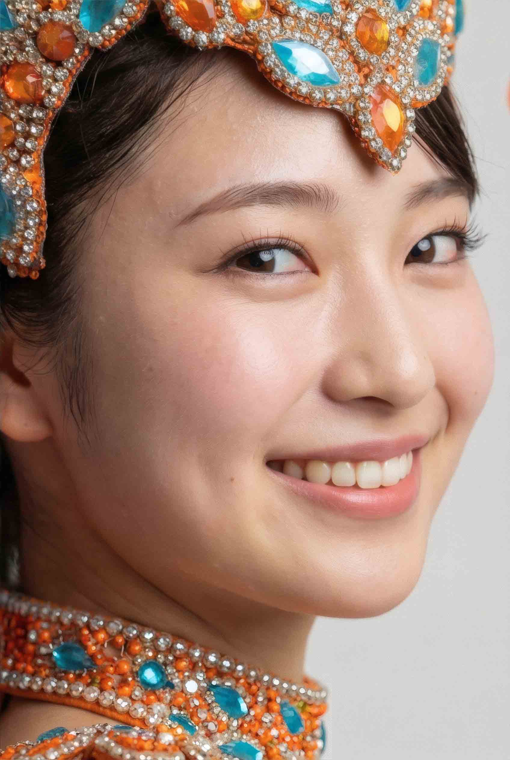 「翠(鮮やかな青緑)」色の衣装をまとい、サンバの熱狂という「嵐」の中で、一輪の「華」のように咲き誇る笑顔……それでいて「すいらんかちゃん」という字面に武侠小説の登場人物のような可愛い響き。まさに激しいサンバのリズム(嵐)の中で、涼し気に、しかし華やかに咲き誇る一輪の花のよう。