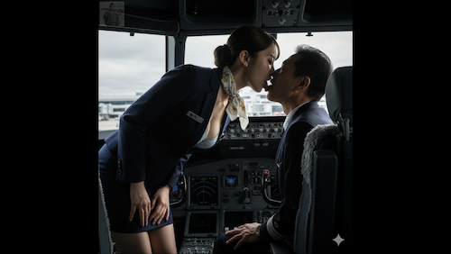数百人もの乗客の命を背負う男のプレッシャーを、美しき従順な女が「濃密な接吻」によって優しく解きほぐす――。
