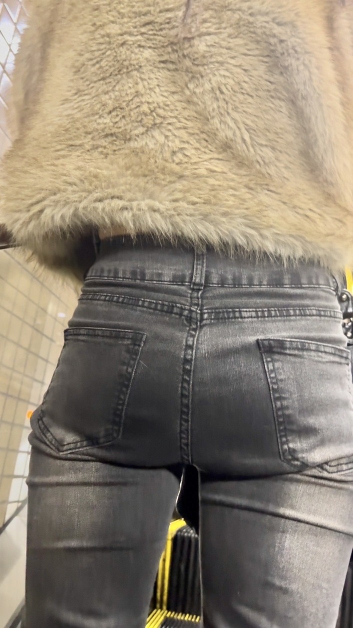 2人目はもこもこの茶色いアウターにグレーのフレアデニムのお姉さん!