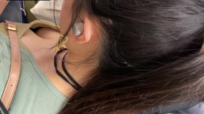 電車に乗り合わせた地味系OLに撮影させていただきました。顔や服装は地味ですが・・・おっぱいは派手な地味系OL。その膨らみから推測するとGカップくらいの巨乳ちゃん。胸元が大きく開いた洋服ではありませんが、隙間が大きく、後ろから覗くと巨乳の谷間がばっちりと見えました。ユルユルの洋服の為、ブラジャーが・・・ただ、地味OLの巨乳の谷間を凝視するだけの動画をぜひ。