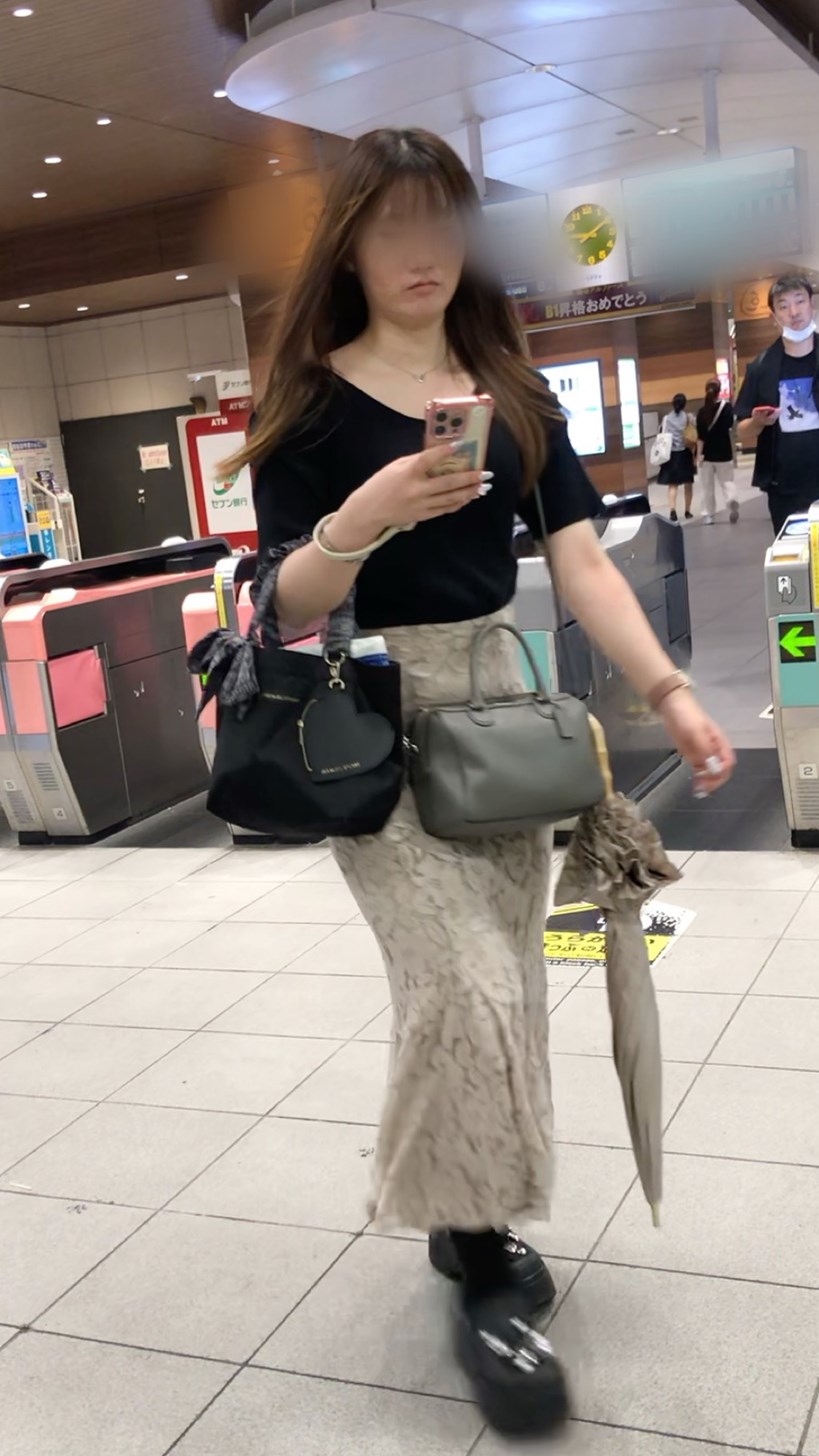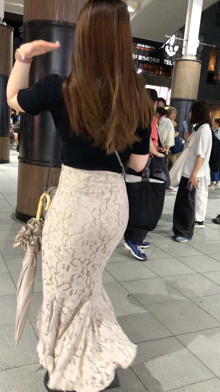 タイトなロングスカートからは形のキレイなお尻!