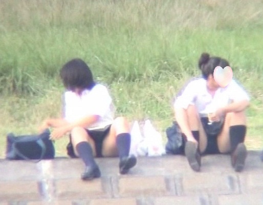 他の2人もスカートをめくり上げて大股開きをしたりあぐらの状態から大股開きになって股間部分が丸見えになったりなどしています。