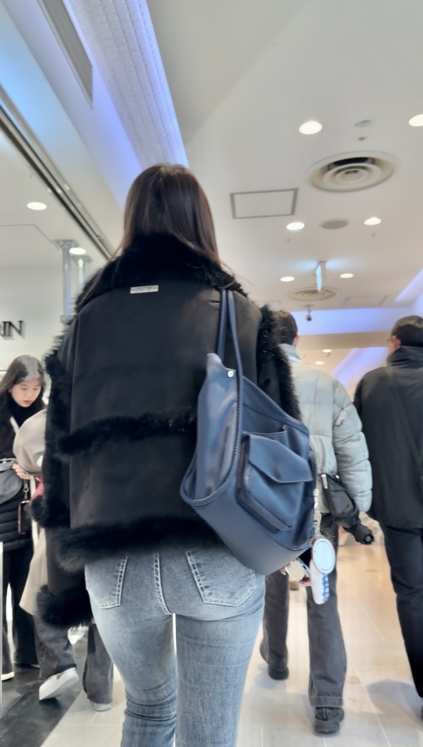 2人目はもこもこのアウターにブルーのフレアデニムのお姉さん!