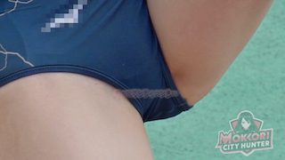 西のKYU地方で行われました。西の名門女子大でありネイビーのブルマ型パンツが特徴です。走り幅跳びの準備シーンから動画は始まります。すでに待機場所にいた美女は今か今かと跳躍時間が来るのを待ちます。その際にまさかの足を上げるハイキックを披露!これにはたまらず超ズーム!この衣装でハイキックしたらもうそうなるよねというとんでもない食い込みでスタンドは大盛り上がり!モッコリ確定です!