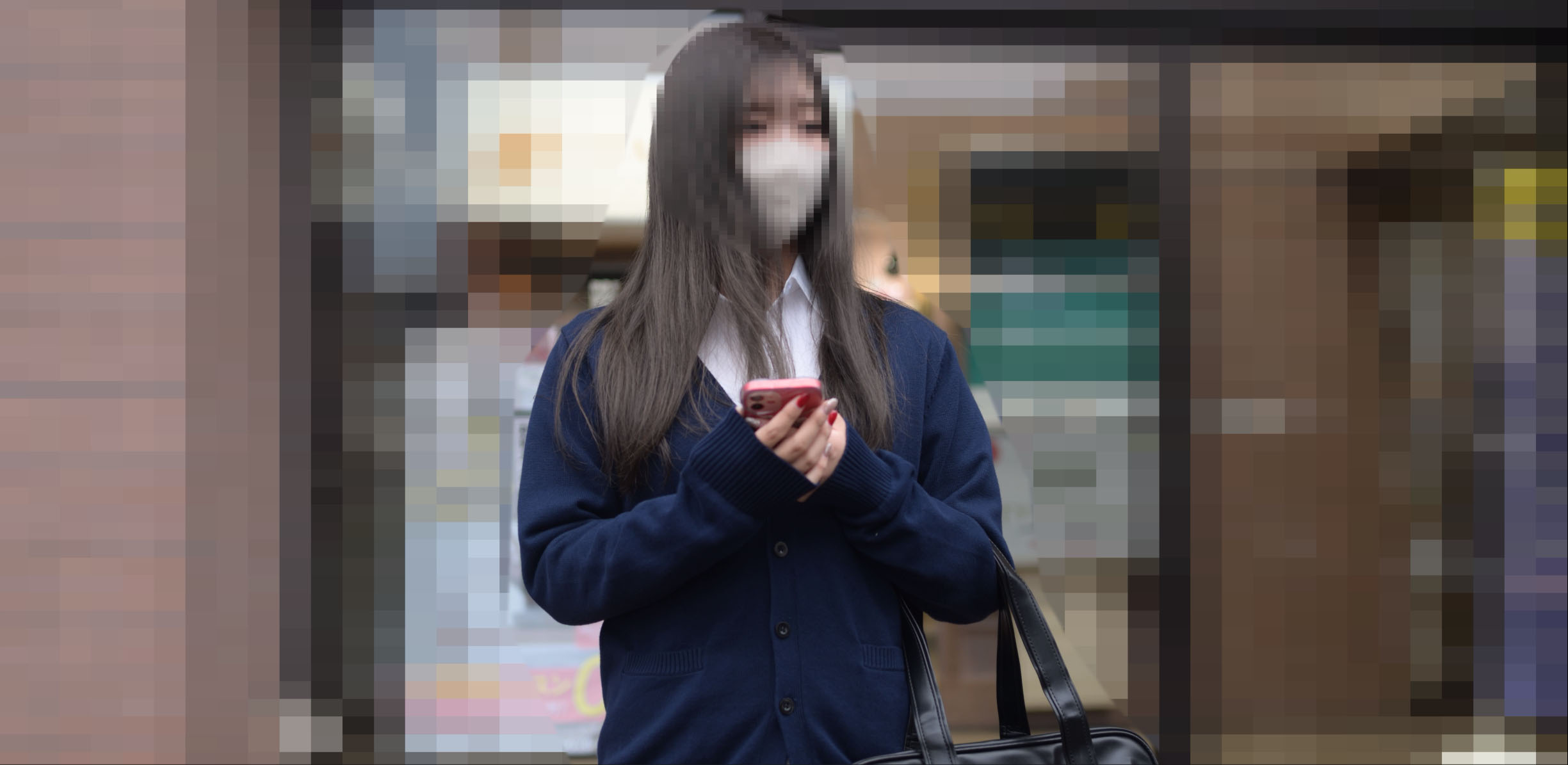 今回はバス停の前に佇んでいた黒髪ロングちゃんを追跡してきました。小柄ですが、マスク越しでもわかる中々の美少女ちゃんです。