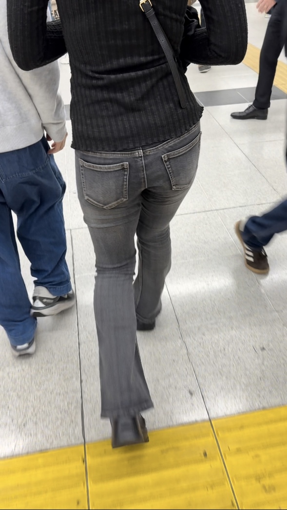 1人目(表題)は黒のトップスにグレーのフレアデニムのお姉さん!太すぎず細すぎずちょうどいい感じの足にお尻をムニムニさせながら歩く様がいやらしくてなんか良い