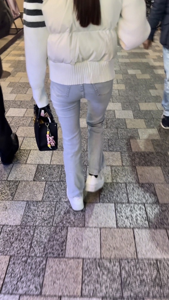 3人目はムチっとした下半身にパツパツのデニムスタイルのお姉さん!歩くたびにPラインが確認できてgood!