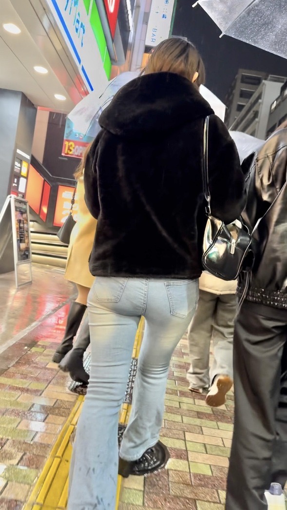 1人目(表題)は黒のアウターにライトブルーのフレアデニムのお姉さん!