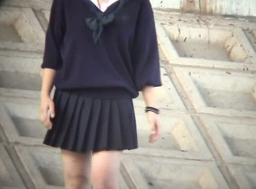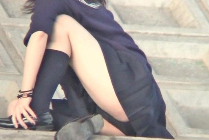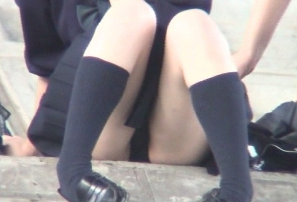 モデル並みに可愛いJ○の美女が超ミニのスカートをめくり上げて股を開いてパンティーや股間部分を見せています。