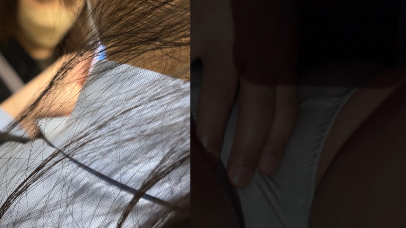 電車待ちから乗り込み前まで。真っ黒なストレートが綺麗な女子の後ろに陣取り電車へ乗り込む寸前に異変に気付き女子が逃げる。失敗かと思われたが別のポニテ女子を見つけ、一気に密着する。
