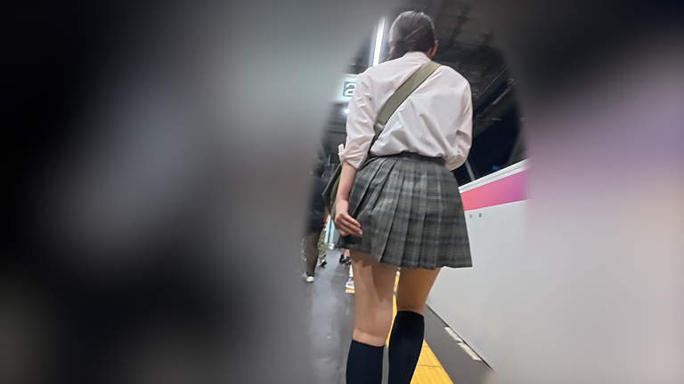 最初はスカートの上から、徐々にスカートの中に手を侵入させ、お尻に触れる。