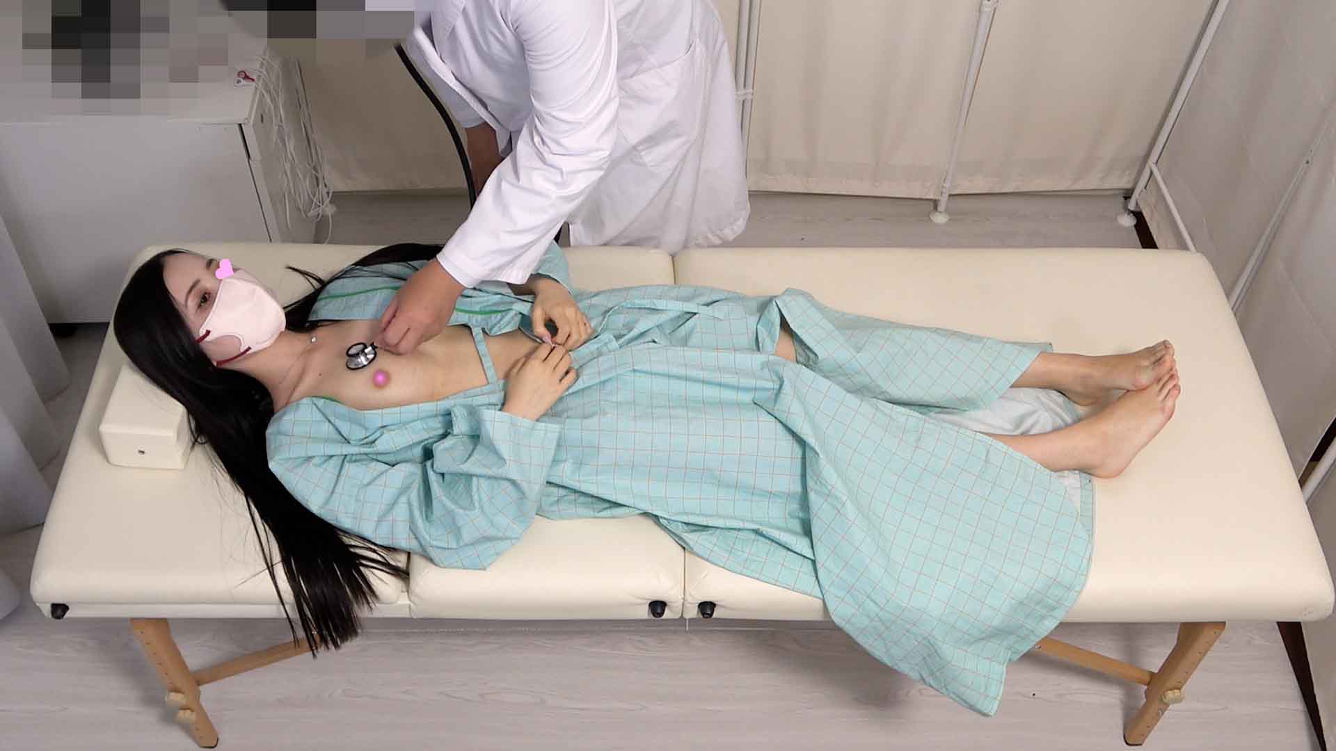 心電図検査を行いながら、美巨乳を揉みしだきます、、、