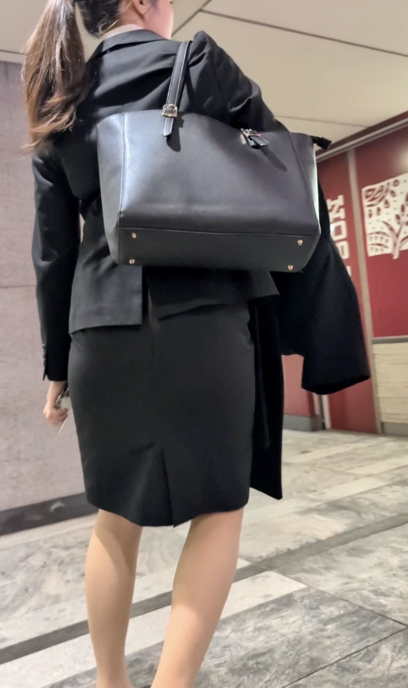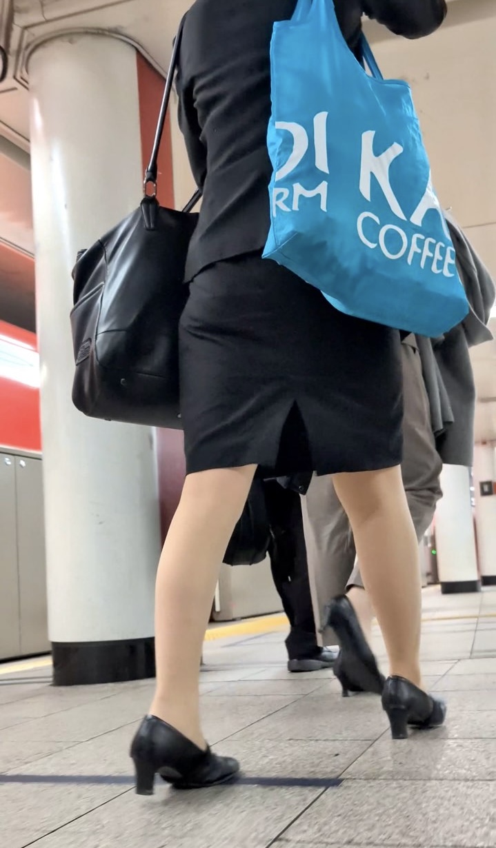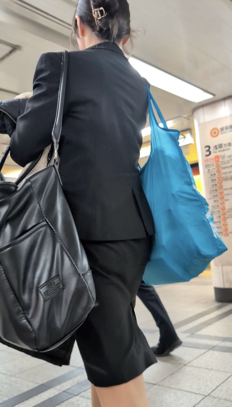 1人目は面接かな?と思しきリクルートスーツOLさん。地下鉄改札を歩いてコンビニ店内にてお買い物…の短い動画ですが、鮮烈なインパクトを与えてくれるタイトスカートの丈とフォルムが最高すぎます。コンビニ店内での立ち姿はたまりません。
