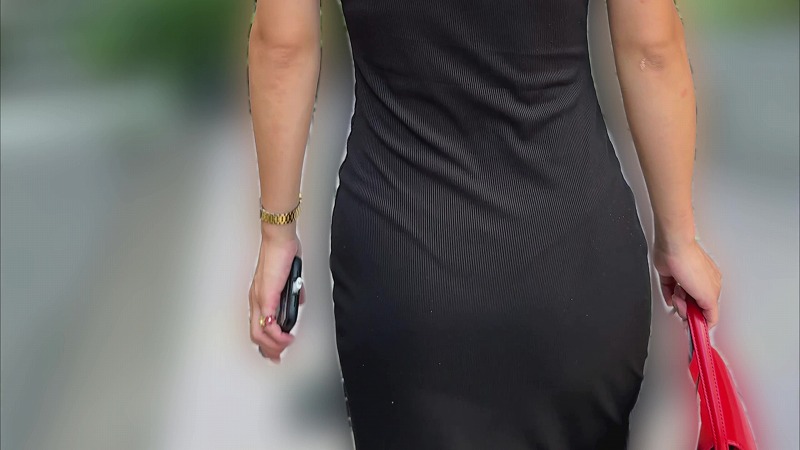 クネクネと左右に揺れ動く腰とお尻からはいい女オーラが駄々洩れです。
