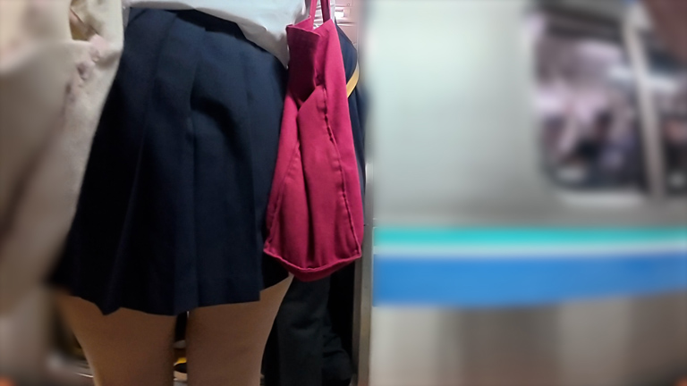 発車後、スカートを捲り、指先で少しずつお尻に触れていく。