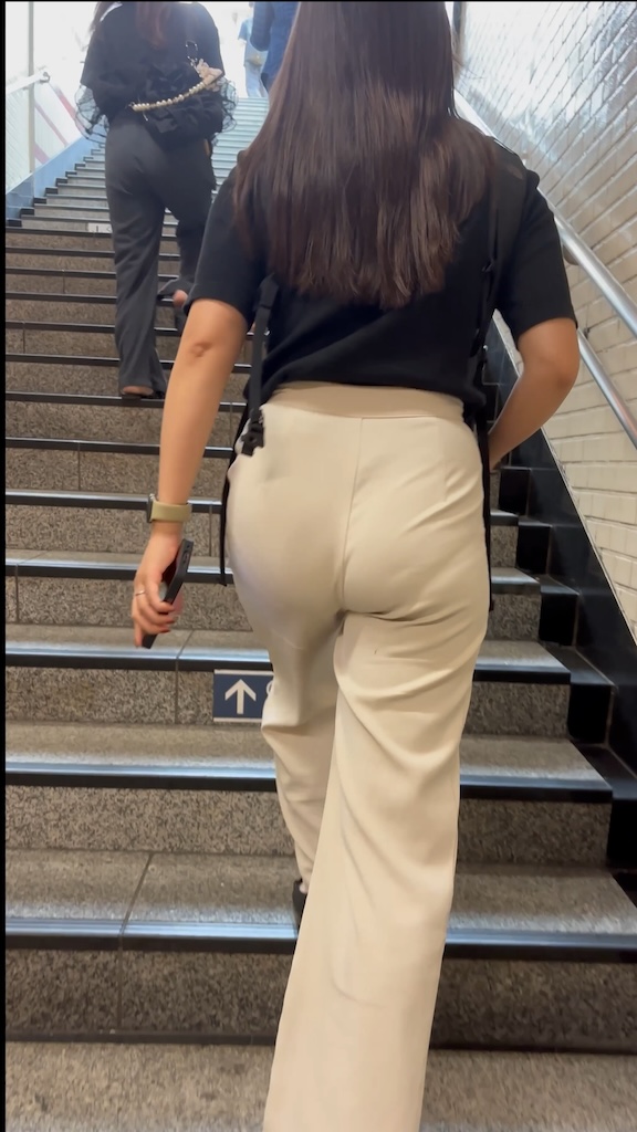豊かな尻肉を全開で階段を登る