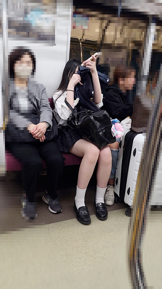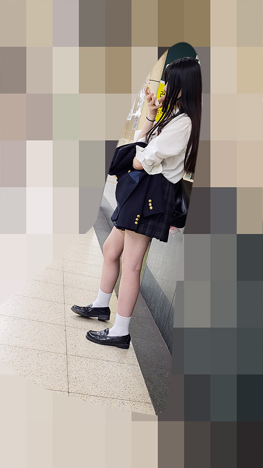 駅の入り口で発見した色白可愛いこをひとまず追いかけてみようと思い、電車に乗り込んでこのJKと同じ空間にいられる幸せをかみしめます。そしてJKの自宅がある駅で降りてそのままついていきます。そしてエスカレーターチャンスが訪れました!後ろから人は来ていますが欲望が勝ってしまい、、スカートに手をかけてしましました。。防犯カメラにもがっつり映ってしまっているので震えてますが。