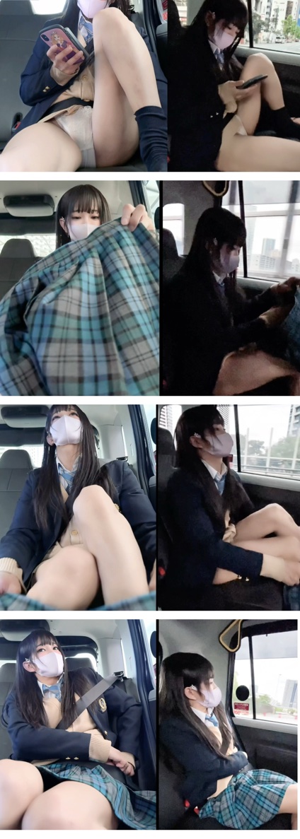 まずは硬く閉じた股を開いて◯ンツをカメラに見せるように命令。ただでさえ短いスカートなのに、少しでも開いたらもう隠す布などない制服を着てます。当然、運転手さんが振り向いたらバッチリ見られてしまう角度です。