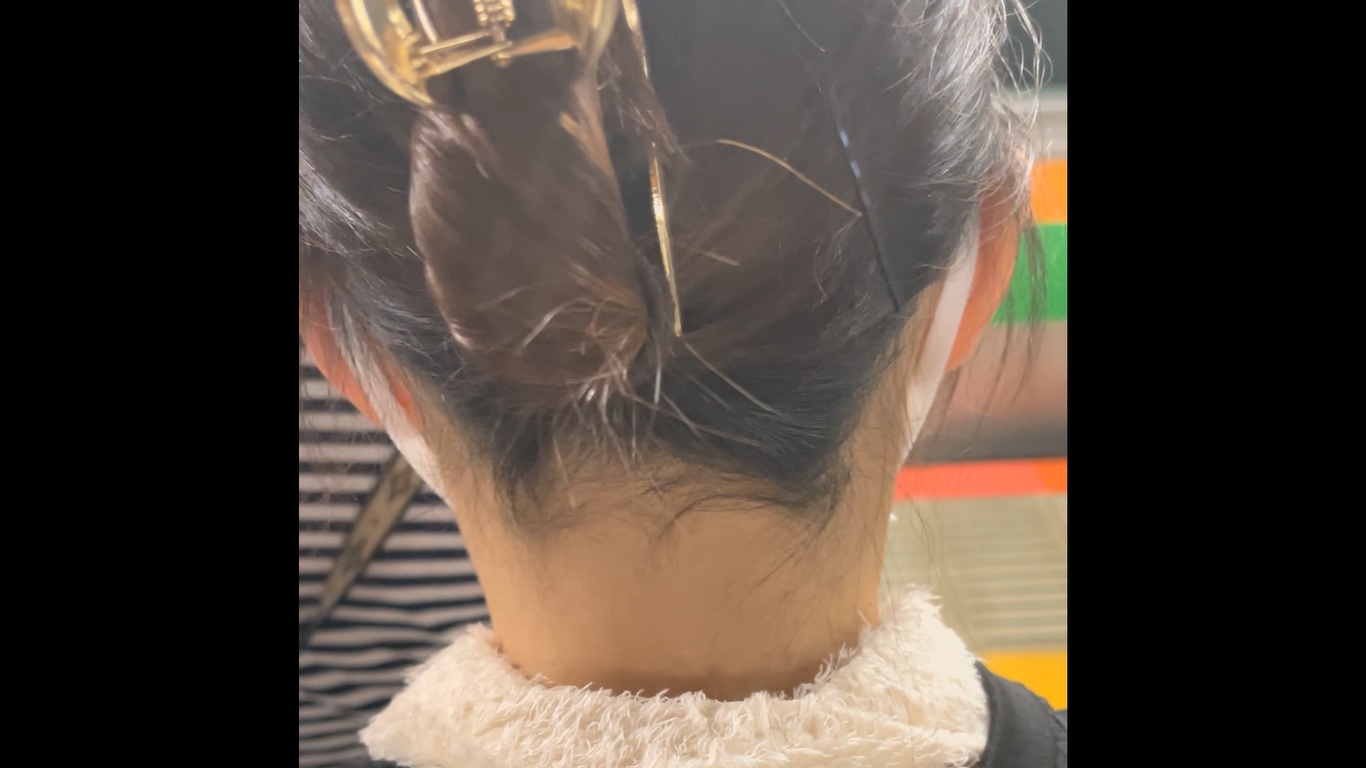 髪の毛をアップでまとめた小柄な女子を発見しすぐに後ろへ並ぶ。電車に乗り込む前に腕まくりをしていたが肌が真っ白でとても綺麗だった。