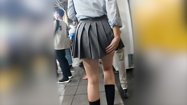 最初はスカートの上から、徐々にスカートの中に手を滑り込ませ、尻を撫でていく。