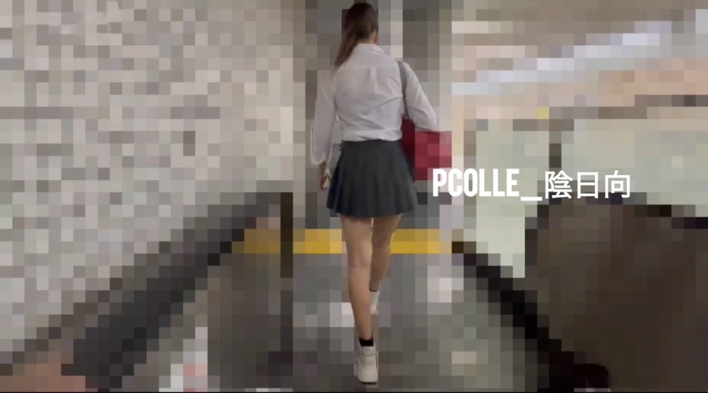 とんでもないミニスカJKにアドレナリンが出まくりでエスカまで追跡。最後尾からのアタックだけど、捲る前から下尻肉がもう見えてる。
