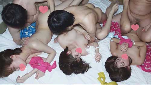 3名を並べてバイブと電マで責めたあと部屋のあちこちでヤリまくり状態になってます。