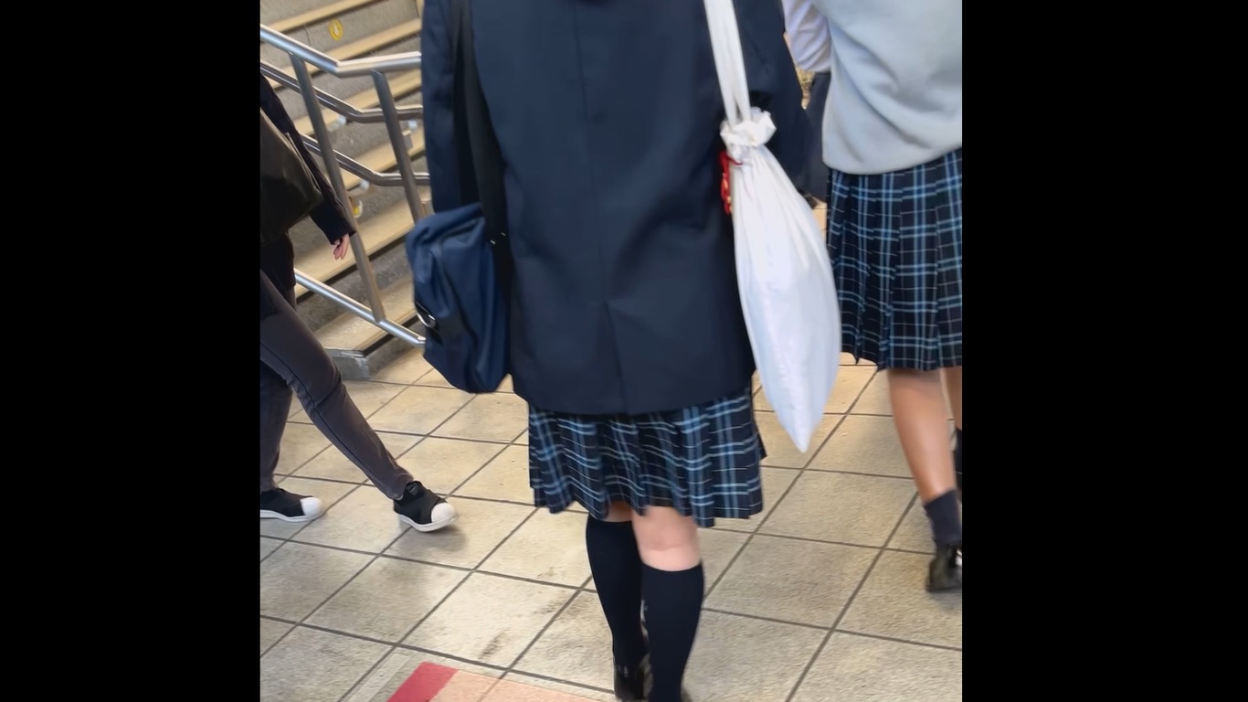 どことなく品を感じる女子を見つけ後ろに並ぶ。ブルーのチェックスカートに紺のハイソックス・ポニテの組み合わせが優等生の王道といった感じ。