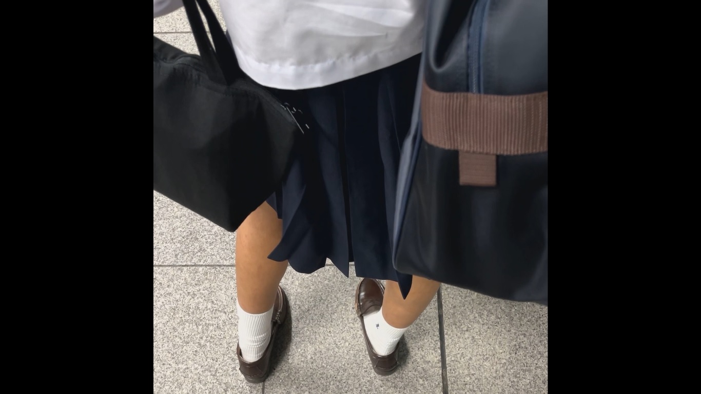 見るからに可愛らしいセーラー女子を見つけ真後ろへ並ぶ。長めの髪を髪留めでまとめているアレンジもかなり可愛い。両手に荷物を持っているのでかなりのねらい目。電車が到着し離れない様に車内へ。少しバタつくも真後ろのまま乗車し無事カメラを設置。